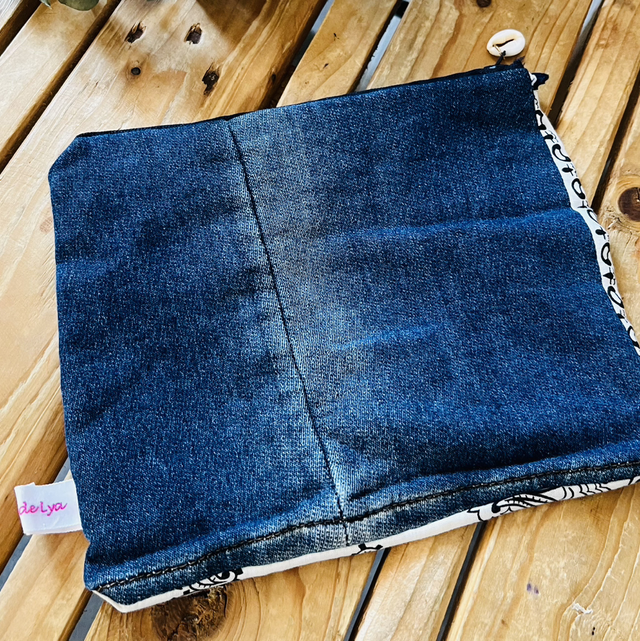 Pochette bi-matière bandana / jean idéale par son format et sa touche originale pour l’été ☀️