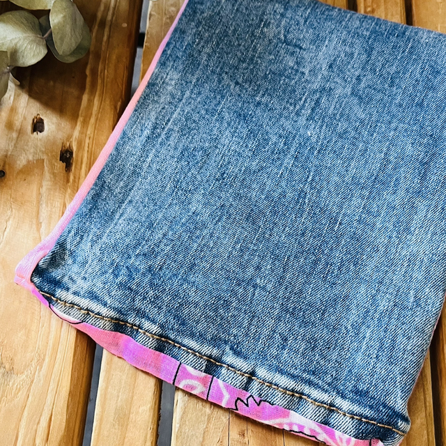 Pochette bi-matière bandana / jean idéale par son format et sa touche colorée pour l’été ☀️